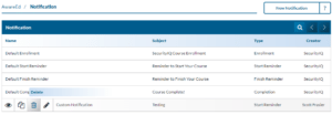 Notification are emails sent to learners during an AwareED campaign. The purpose of the emails is to notify learners that they have been enrolled or finished an AwareED course. Notification are also used to send reminders to learners to start or finish an AwareED course.