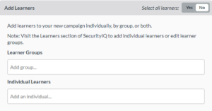 - Select the learner groups or individual learners you want to be included in the campaign.