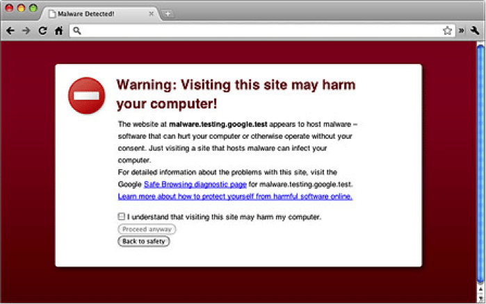 If there is a match to the database, the browser will instead load a warning page that the website may harm your computer or steal your information.