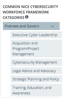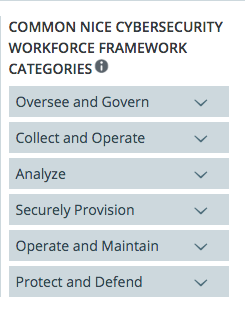 Common NICE cybersecurity workforce framework categories