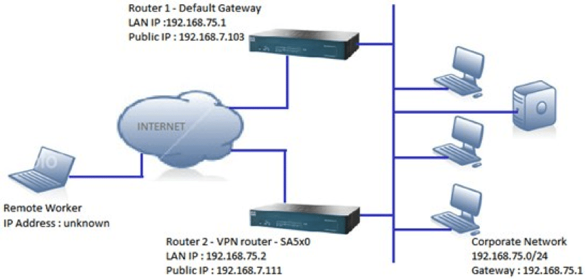 An example of a Router being used as a Gateway is illustrated below: