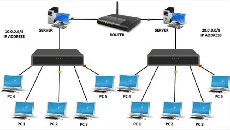 As can be seen, it is the switch that creates the network. From there, it is then the Router that connects the network by linking up the two servers together which are located in different WANs. It is important to note that a Switch should not be confused with a “Hub.”
