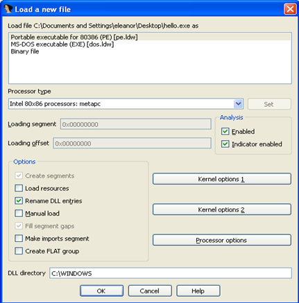 - ASM: files that contain all the information needed to create the binary file with the assembler. The assembler must understand the syntax that Ida uses for this to be possible. Ida uses the assembly that is chosen under the Options – General – Analysis menu option, which can be seen on the picture below; in our case, the "Generic Intel 80x86" target assembler is being used.