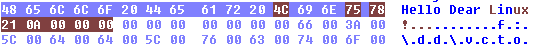 We can see that the bytes have been properly changed. To save the executable, we can run the pe_write.idc script with the use of File – Script file and save the executable as hello.exe. After that, we can run the program from console and it should print "Hello Dear Linux!" instead of "Hello Dear Windows!"