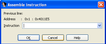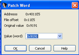 If we close the dialog box without changing any bytes and open another with the Edit – Patch program – Patch word menu option, we'll be presented with a dialog that we can see below: