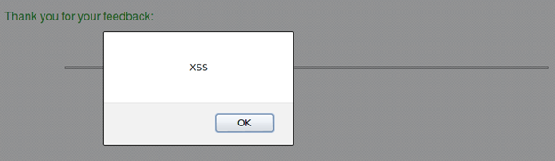 Unfortunately this does not complete one of the challenges, to popup a box with XSS as message. But still we found vulnerability.