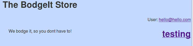 After logging in you will see that the email address we registered with is shown in the top right hand side. Again, there is a possibility that the user registration is vulnerable to HTML code injection.