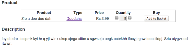 Clicking the "Add to Basket" page takes us to "basked.jsp," where we can see the status of our basket and can also update it.