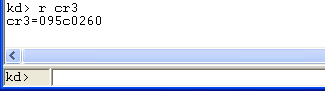 So far we've figured that the virtual address is the same as linear address, so in the next part of the article we can use virtual addresses because they are the same as linear. Let's take a look at the 0x0012ff60 virtual/linear address and try to figure out how to get physical address out of it. First, we must obtain the address of the page directory table, which contains the PDEs. To get the base address of the page directory table, we can simply read the contents of the CR3 register, which acts as the page directory base registers (PDBR) and points to the physical address of the first table (if PAE is enabled, we're talking about the PDPT table, otherwise PDT page directory table). We can view the contents of the CR3 register by executing the "r cr3" command as can be seen in the picture below: