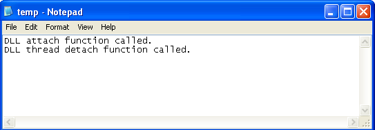 We can see that we have a pretty simple DLL. The DllMain() function is called when the DLL is loaded into the process's address space. Upon that, one of the four messages is written to the C:temp.txt file based on the reason why the function was called.