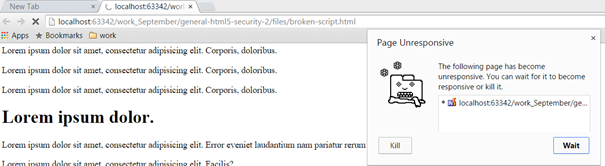Figure 11: The scripts keep running so the user is notified and allowed to get rid of the page (stop processing anymore JavaScript)