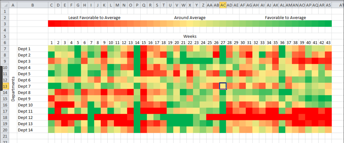 This allows hunters to represent data in color format. Hunters are able to represent different data using different colors, and this is especially efficient in displaying different data groups and their relationships. This method of representing data makes it possible to represent distinct data that is of interest, such as outliers. See below for an example of how heat maps look.