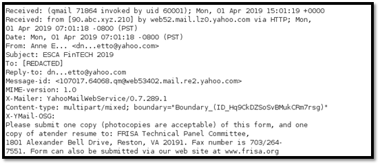 On February 21st, 2019, we detected an email with a suspicious attachment discussing an upcoming cybersecurity and mobile money transactions event in western Germany. We discovered that the email had been sent to three employees within our organization and that they had received similar emails in the past month, although previous attempts were unsuccessful. Our security team determined that the suspicious attachment named 01019-CS-EG.pdf had malicious code which attempted to exploit the famous CVE-2018-8495 vulnerability.