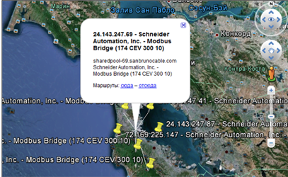 Security firms use similar tools to detect potential targets of the cybercrime, in the next picture is proposed the Group-IB automated systems for SCADA environments detection. It is easily seen that it plots the site of interest on the map where are located potential targets such as industrial infrastructures.