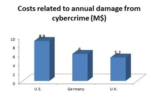 The US has suffered the largest cost cost, followed by Germany with $5.9 and Japan at $5.1. Cybercrimes are very costly for organizations, despite the organizations size. All industries fall victim to a different degree.
