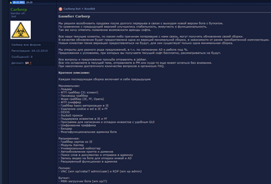 Figure 5 - Carberp sale on Russian Forum (Group IB)