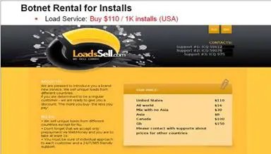 - Botnets & Rentals [Direct Denial of Service (DDoS) $535 for 5 hours a day for one week], email spam ($40 / 20K emails) and Web spam ($2/30 posts)