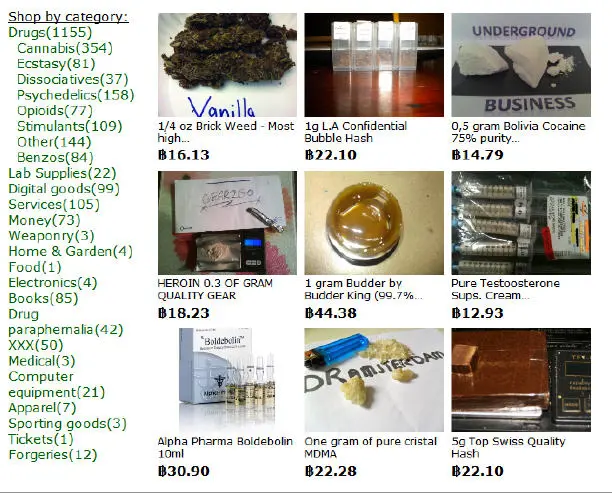 The researchers examined over 24,400 separate items sold on Silk Road noting that it mainly used as drugs market as observable in the following table reporting a list of Top 20 categories of available items.