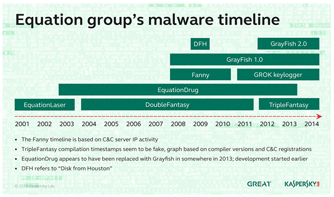 Figure 4 - Equation Group malware timeline (Kaspersky Report)