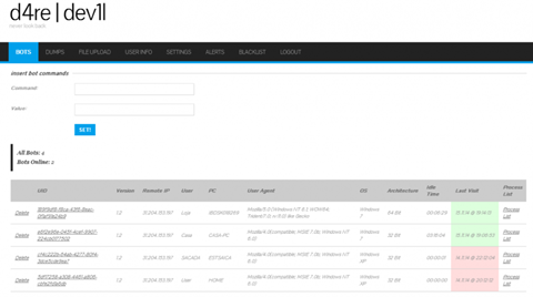 By accessing data hosted on the compromised Command & Control servers, the researcher profiled the botnet used by the criminal crews:
