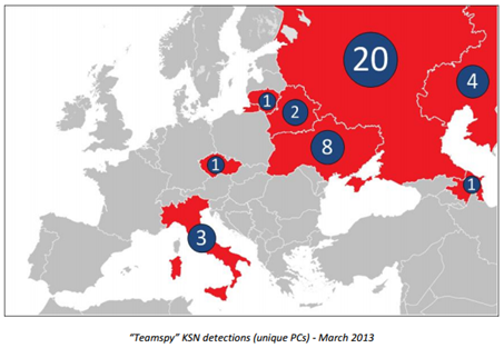 The surprises do not end here. Security researchers found that techniques adopted by TeamSpy are quite similar to methods implemented by the authors of an online banking fraud ring known as Sheldon. Meanwhile researchers at Kaspersky Lab found similarities to the Red October cyber espionage campaign.