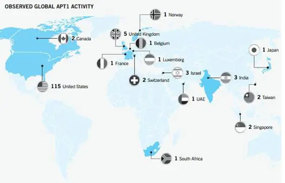 If RedOctober and TeamSpy campaigns still are without official responsibilty, the situation is different for the cyber espionage campaign dubbed APT1 and discovered by Mandiant – the security firm that tracked the operation back to China. The term APT1 is referred to one of the numerous cyber espionage campaigns that stole the major quantity of information all over the world that has interested different sectors from IT to Energy sector.