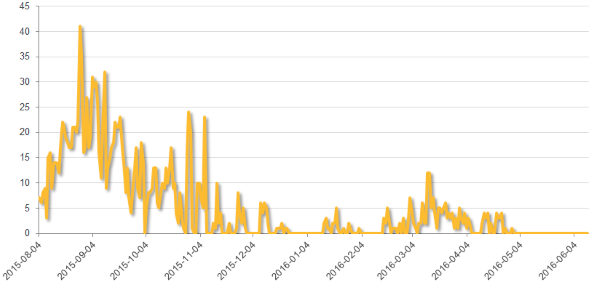 What's interesting to note, however, is that a graph published by Proofpoint late last week suggests that Nuclear was still active during the second half of May.