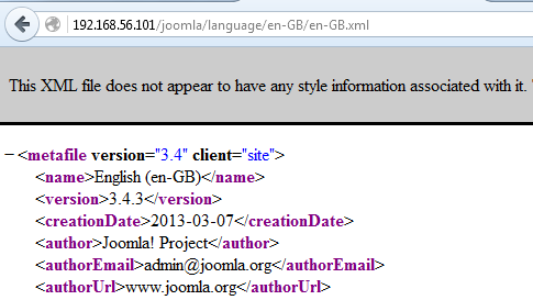 curl –v –X HEAD http://<ipaddress>/joomla/
