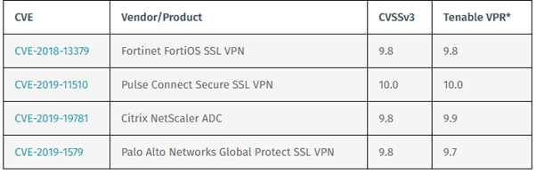 Looking at the last year, we can find a set of vulnerabilities present and explored by criminals in SSL VPN solutions. As these kinds of devices are the edge of the internal network with the public internet, they are an enticing target for criminals. As VPNs take an increasingly important role amidst the rise in working remotely, exploitation of these devices can allow criminals to pivot to an internal network and begin targeting the entire ecosystem.
