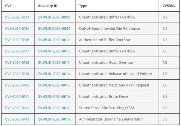 In total, SonicWall patched 11 vulnerabilities on October 12th, 2020. The following table lists the remaining 10 vulnerabilities that were patched:
